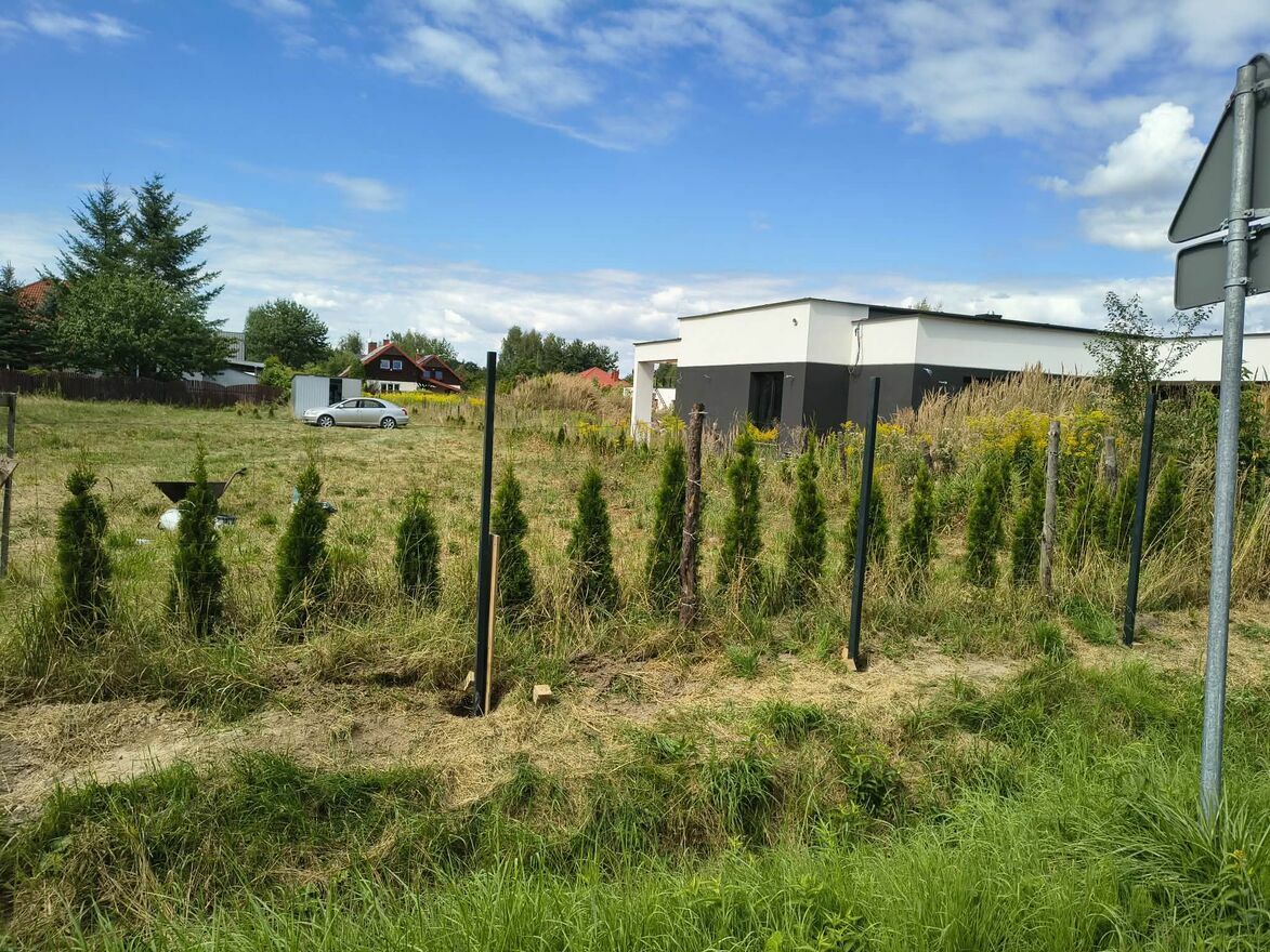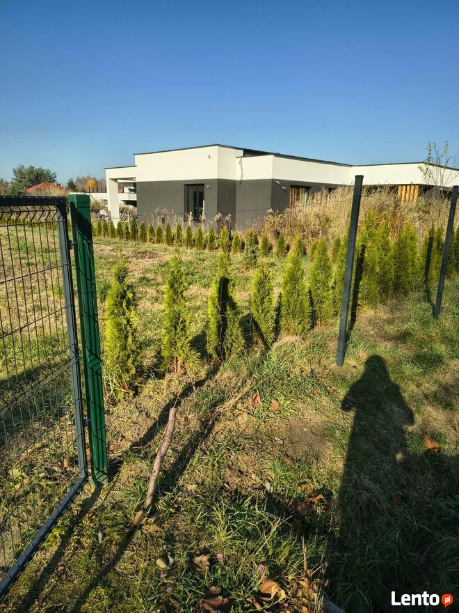 Działka jest ogrodzona znajduję się na niej blaszany garaż. Dookoła działki zasadzone są tuje szmaragdowe,